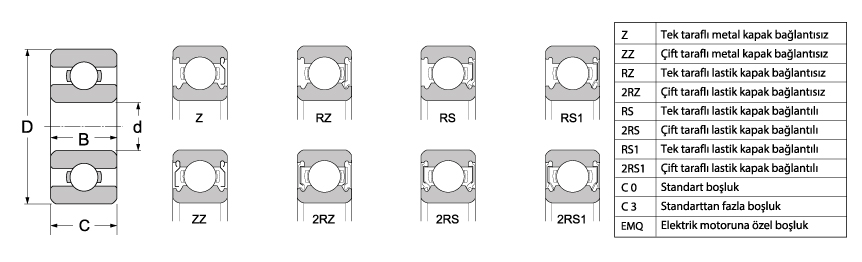 | d (İç Bilezik) | D (Dış Bilezik) | B,C (Genişlik) | Rulman |