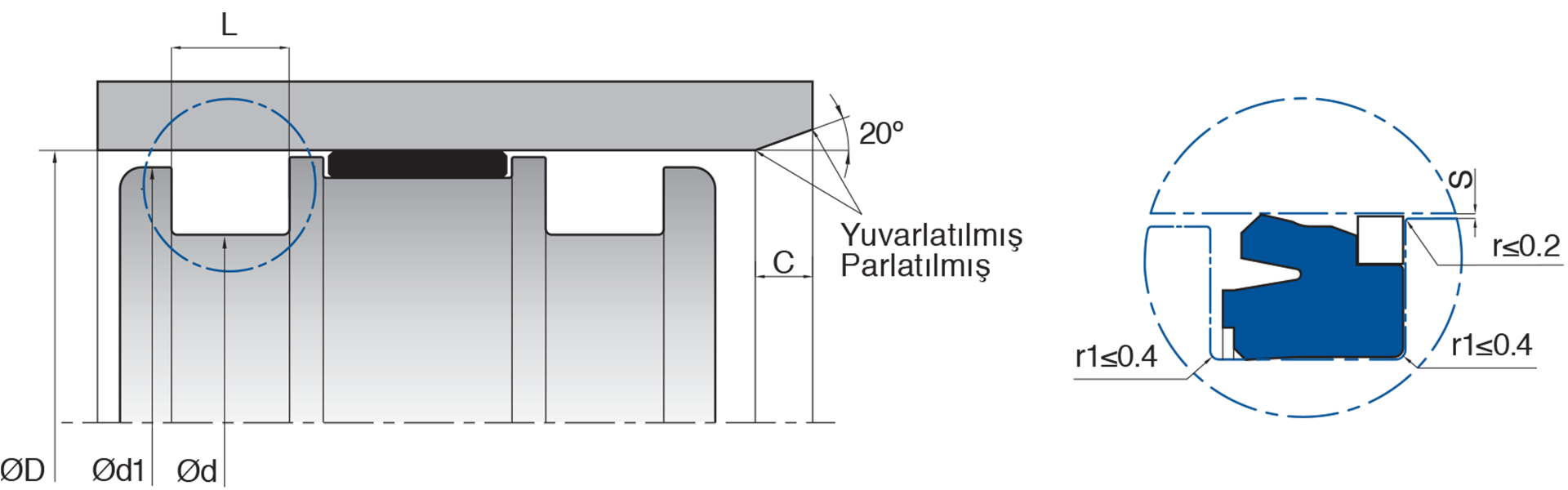 K40 hidrodinamik basınç birikimini engelleyen notchlu yapıya sahip termoplastik poliüretan nutring ve termoplastik POM destek ringinden oluşan tek etkili piston sızdırmazlık elemanıdır.