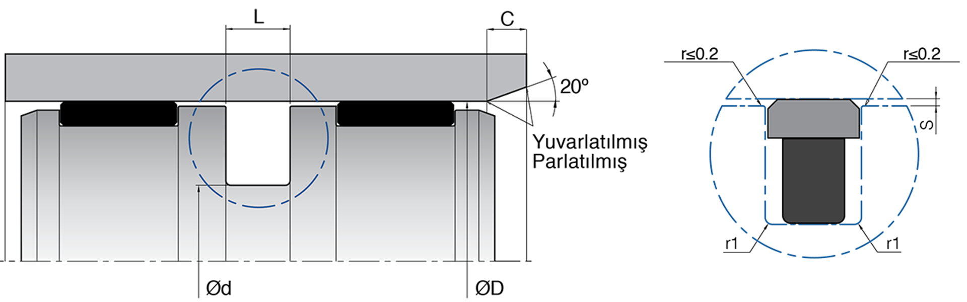 K501 «Z» kesime sahip termoplastik sızdırmazlık ringi ile dikdörtgen kesite sahip elastomer itici ringten oluşan piston keçesidir.