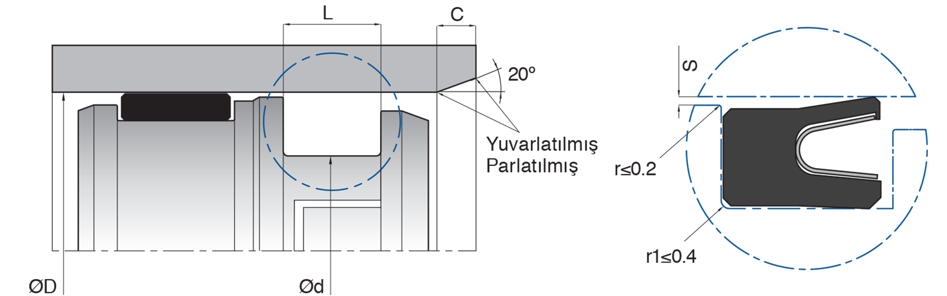 K751 PTFE sızdırmazlık nutringi ve «V» şeklinde itici paslanmaz yaydan oluşan tek etkili piston sızdırmazlık elemanıdır.