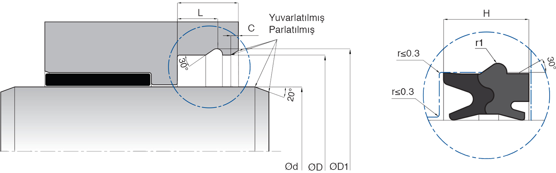 K56 pnömatik toz boğaz keçeleri , sızdırmazlık görevi yapan kauçuk ring ve özel tasarımlı TPE malzemeden yapılan kazıyıcı dudağa sahip profilli ringiyle tek etkili toz boğaz sızdırmazlık elemanlarıdır.