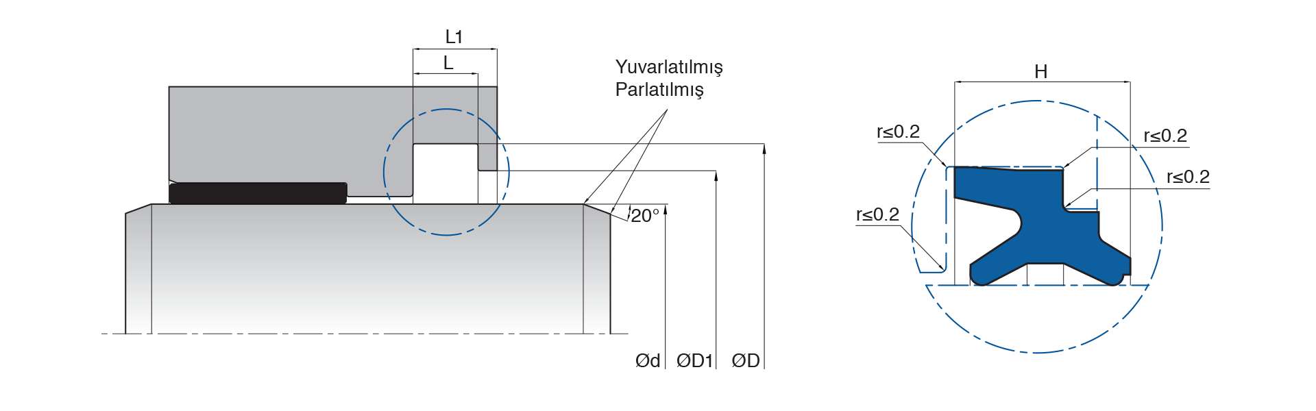 K64 pnömatik toz boğaz keçeleri , dış ortamdan gelebilecek olumsuz partiküllerin silindir içine girmesini engelleyen toz dudağı ve sızdırmazlığı sağlayan nutring dudağıyla her iki fonksiyonu beraber yapabilen tek etkili sızdırmazlık elemanlarıdır.